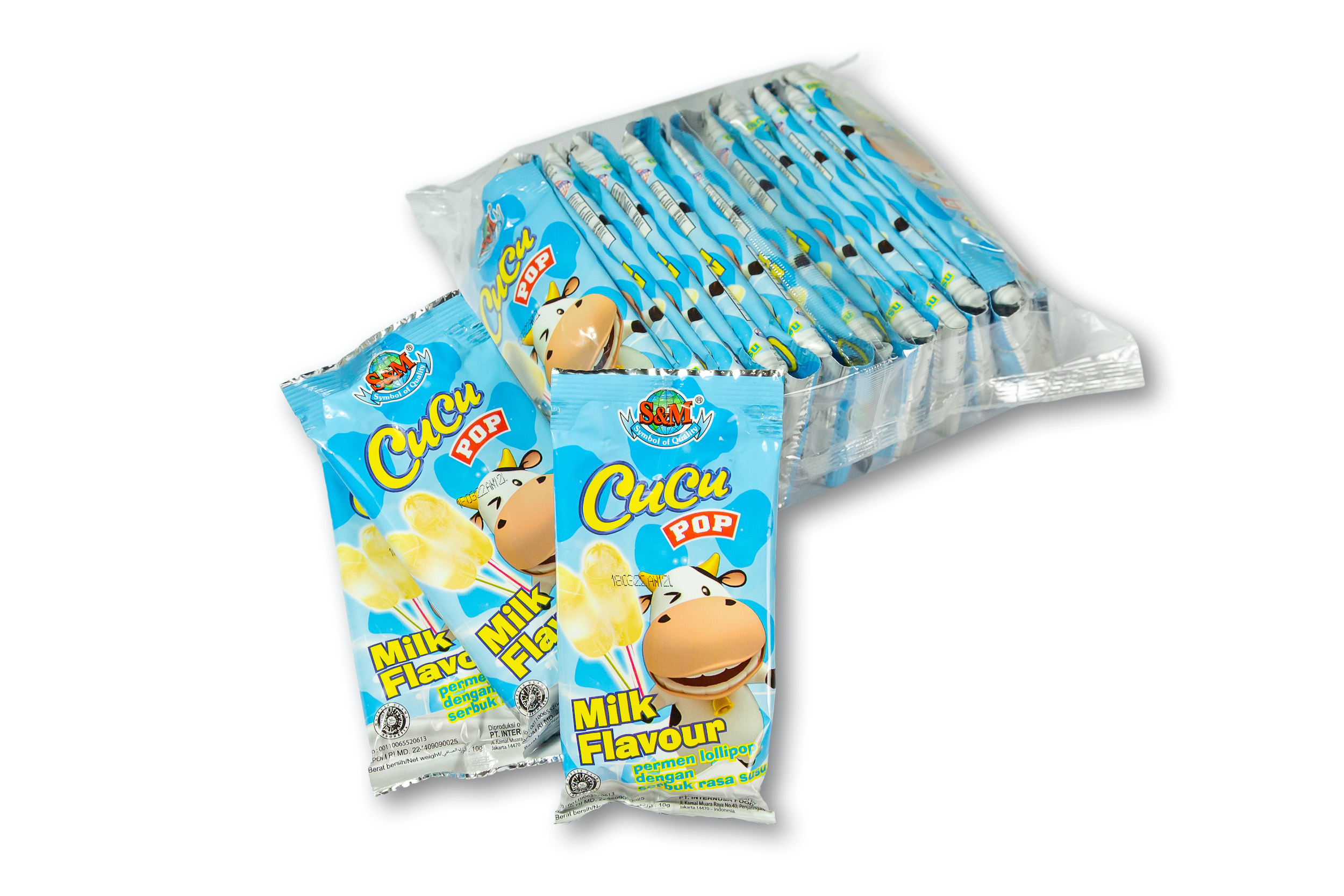 A product extension of CUCU POP Assorted flavours, CUCU POP Milk is made of our own factory-made condense milk using a REAL butter! A classic milk lollipop with a milk-flavored dipping powder which makes the product sweet and creamy. CUCU POP Milk is great for special events and at times when you need a little boost to brighten up your day. It can be a sweet addition for your birthday cake decoration and to be included in goodies and gifts during parties, competitions, etc. A tasty candy loved by kids of all ages—and surely, grown-ups too!