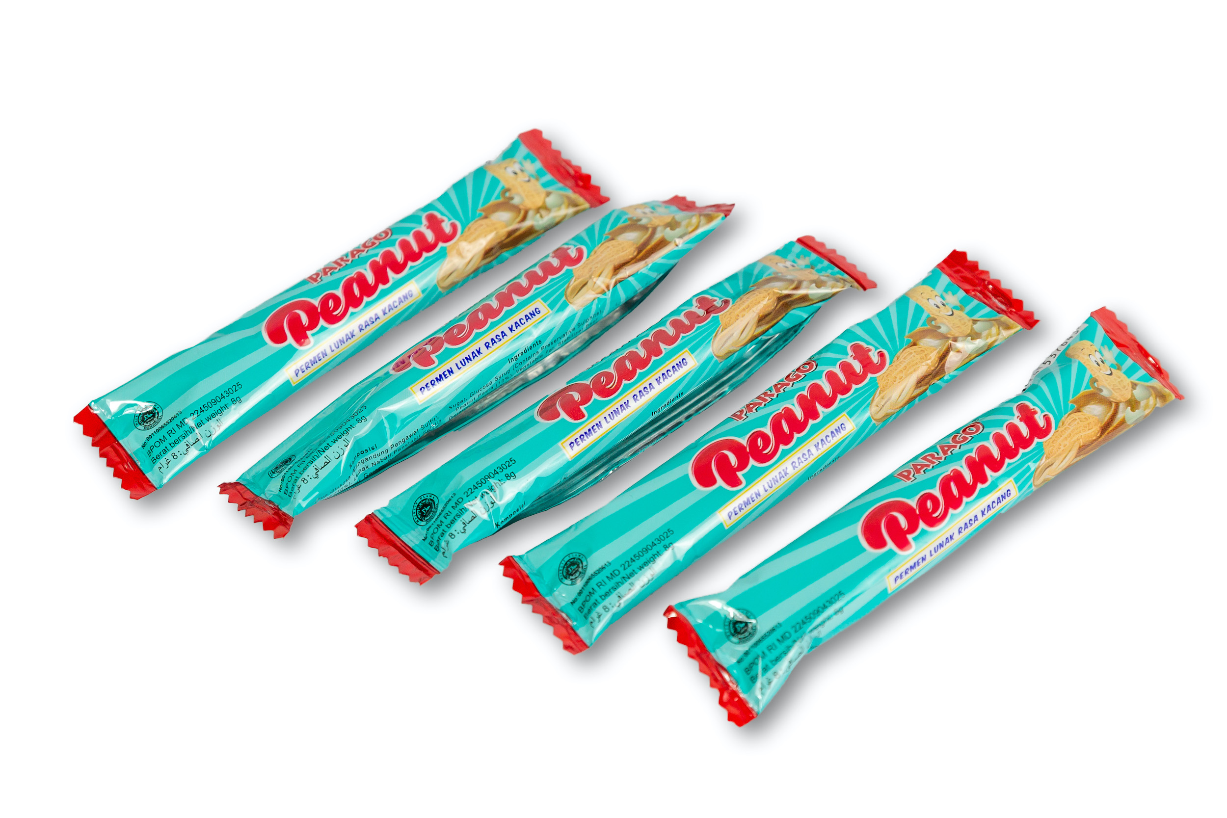 Sugar, Glucose syrup (Contains Sulphite Preservative), Peanut Pasta (10%), Vegetable Fat, Stabilizer Beef Gelatine, Modified Starch, Salt, Emulsifier Soya Lecithin, Artificial Vanilla Flavour..