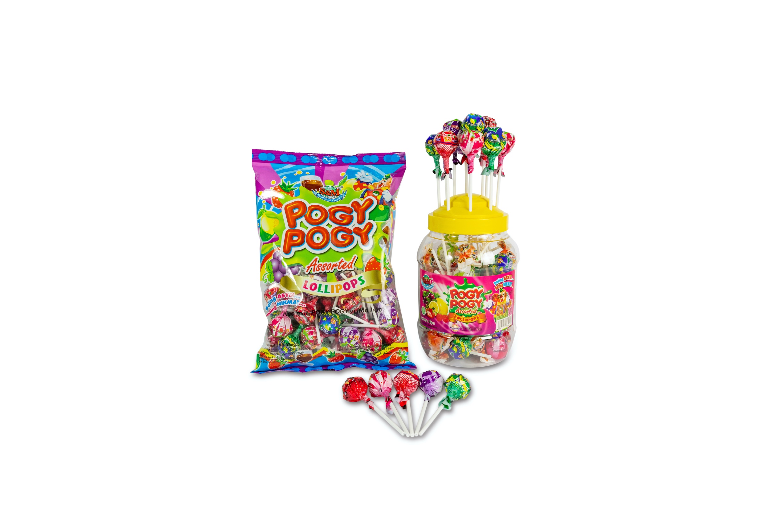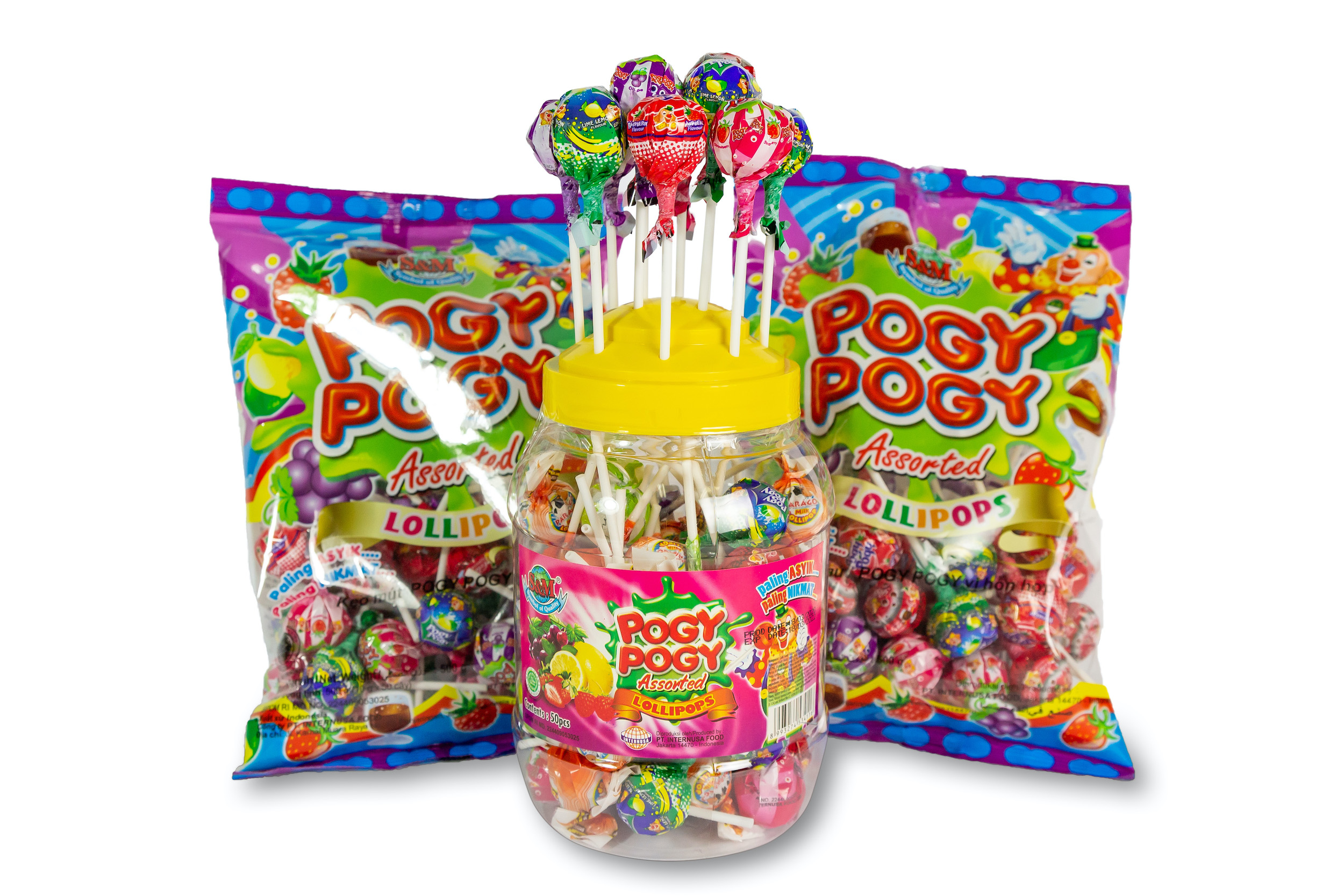 Pogy Pogy is a classic spherical lollipop that comes in a variety of colours and flavours (Strawberry, Grape, Cola, Raspberry, Lemon). The perfect on-the-go sweet loved by young children and adults alike. It is also great for parties, cake decoration, competition prize, waiting room snack, or treats during the festive seasons. Individually wrapped, making it easy to handle and share.